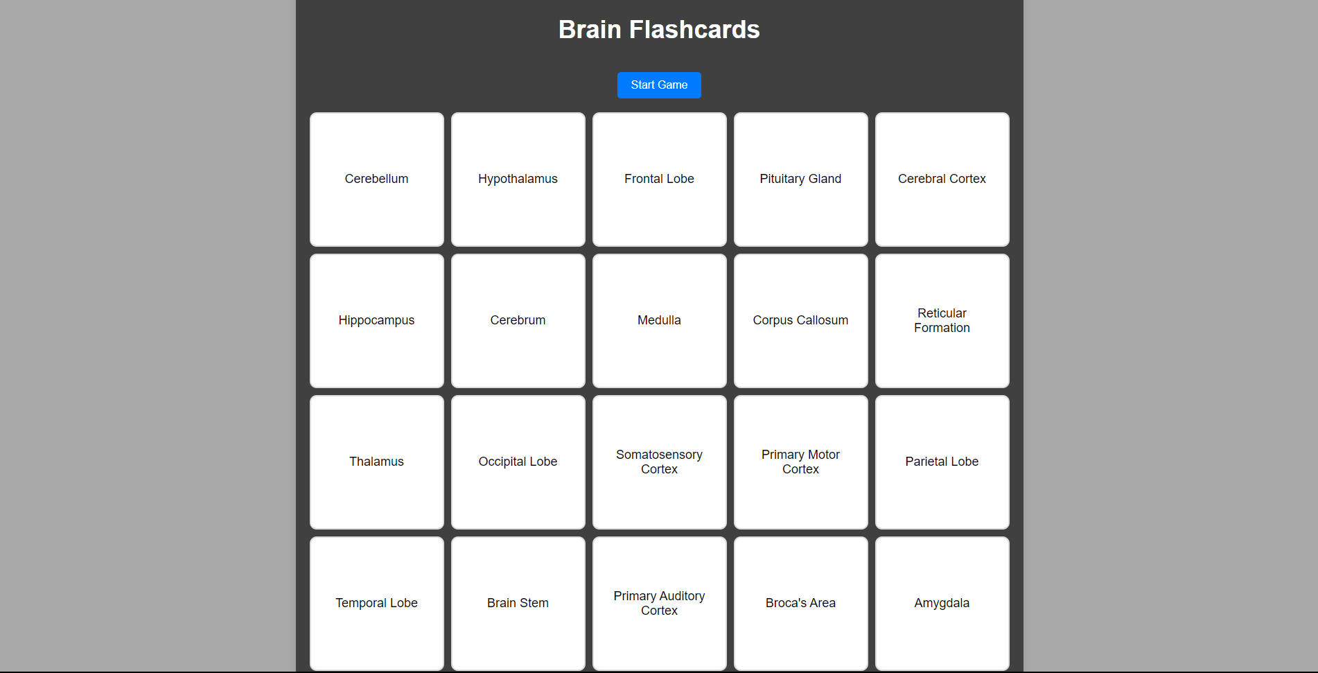 AP Psychology study tool with brain anatomy vocabulary terms.
